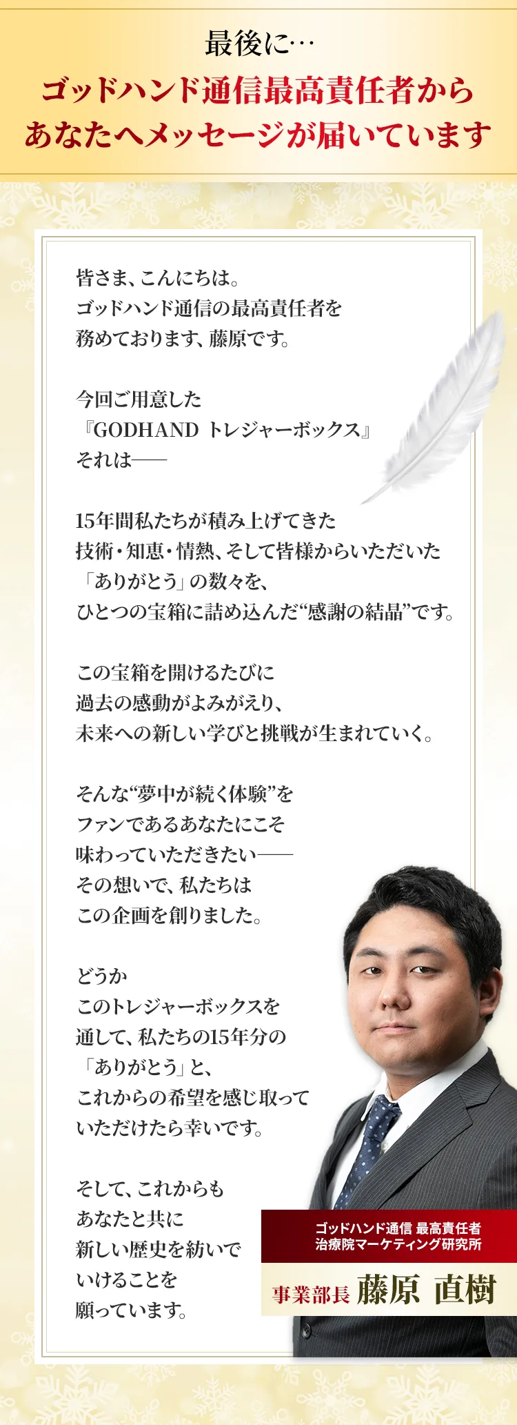 「苦しむ大切な人の前で何もできない…」という葛藤があっても、神技の数々を手にできるから、様々な症状にも“結果を出せる”ようになれる。