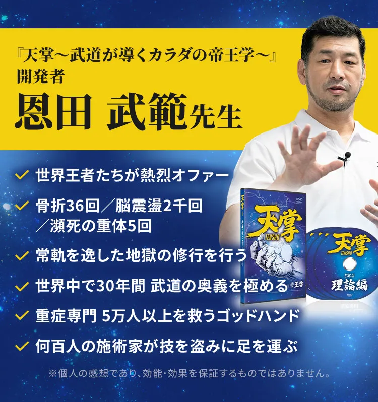 妊娠中の方、痛みが激しい方、人工関節が入っている方など、手技の使用に関しては、映像教材内でお伝えをさせていただいている注意事項を守った上でご使用ください。