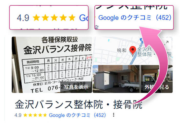 全国に15万軒以上ある治療院のうち、Googleのクチコミが400件を超える整体院は15軒のみ。